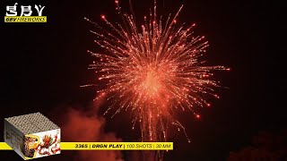 DRGN Play, 100 shots 30mm compound. Deze compound heeft het maximale formaat van 30mm buizen, hierdoor kunnen de grootst haalbare effecten geschoten worden. Goud met rode glitters, puur gouden glitterpalm, en een mega snelle ramfinale.