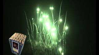57 schoten, Rode, groen, en fluiters die van links naar rechts worden afgevuurd, afwisselend met een waaier van palmboeketten met blink en knetter, 450 gram kruit.