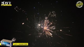 De Snowstorm van Evolution Fireworks is al jaren een begrip in consumentenvuurwerk. Helder blauw gekleurde mines, stijgen op naar prachtige gouden palms, gevolgd door de sneeuwstorm vangrote witte dragon eggs knetterwolken. Super heftig, super sierlijk.