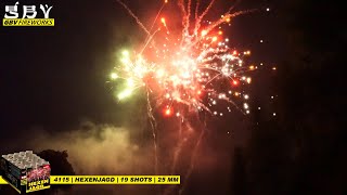 Hexenjagd, 19 schuss 25mm Batterie. Hexenjagd is een fantastische siercake uit de EXPORTmeister serie met Duits vuurwerk. Een goede 19 schuss cake met 25mm tubesize voor goede siereffecten. Deze Hexenjagd schiet zijn effecten zowel in i-shape als in fan-shape.