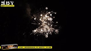 Hexenhaus, 96 schuss 20mm Pyromould compound. Wat een gekkenhuis, bijna twee minuten genieten van diverse soorten gekleurde siervuurwerkeffecten! Hiermee zit je altijd goed!