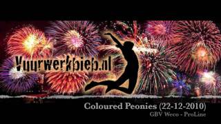 witte tails exploderende in rode, groene, lemon en blauwe peonies, 67 gram kruit.