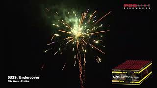 Pro-line Fireworks Undercover, 133 shots, 25+30mm compound. Startende in 25mm, opbouwend naar 30mm kaliber tubesize schiet deze Undercover eerst prachtig sierlijke gouden staarten naar helder gekleurde peony naar knetterende crackling-effecten. Hierna volgen sierlijke gouden palmen met gekleurde briljanten, gouden moving stars met rode, groene of blauwe parels, en een dikke finale.