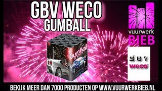 Twaalf schoten met felgekleurde rode en witte kauwgumballen ratelen uit de automaat!