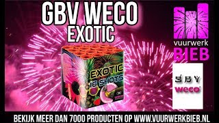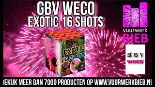 Siercake met zestien schoten exotische kleuren siervuurwerk! Prachtige kleuren wisselen spectaculaire effecten af in deze geweldige sierpot.