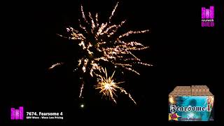 Cakeselectie bestaande uit vier cakes met ieder vijfentwintig schots. In totaal bevat deze Fearsome Four een honderd schots vuurwerkshow bestaande uit gouden palmen, gouden blinkers, witte blinkers, blauwe robijnen, rode punten en crackling!