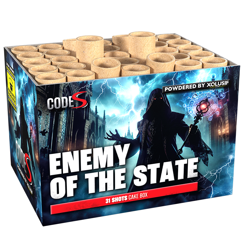 Enemy of the State is een 31 schots powercake, die je meeneemt op een spectaculaire reis van kleuren en effecten. De I-shapes en W-shapes zorgen voor een dynamische en indrukwekkende show.