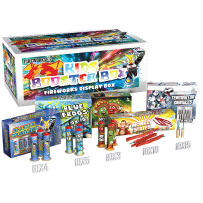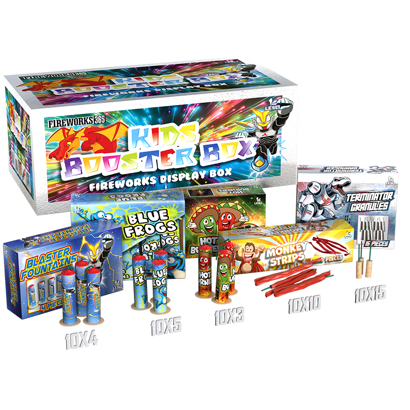 Displaydoos met extra grote pyro-pakketten voor jonge vuurwerkliefhebbers.