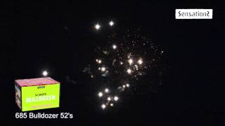 En plotseling dondert er een enorme Bulldozer door de straat. Rode staarten naar felle gekleurde glitter. Grote brocade crowneffecten met blauwe sterren. Felle crackling bouquetten eindigend in gekleurde staarten die overgaan in chrysanthemum palmen, 473 gram kruit.