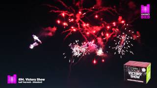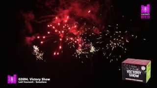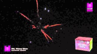 De Victory show begint heftig met grote palm-strobo effecten. Daarna volgt een nog niet eerder vertoonde compositie van fish met rode sterren en zilveren palmen met rode strobe's die vanuit de ingebouwde waaier worden afgevuurd. 32 schots! 381,3 gram kruit.