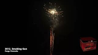 Smoking Gun, 64 shots 20mm cake. Met deze cake uit de serie van Pangu Fireworks haalt u maar liefst 64 schoten siervuurwerk uit een relatief klein product. Afgewisseld schiet deze cake heldere blinkers, heftige crackling tails, gouden palmen, glitter palmen en een finale salvo met heftige crackling de hemel in. Een top cake in zijn diversiteit.