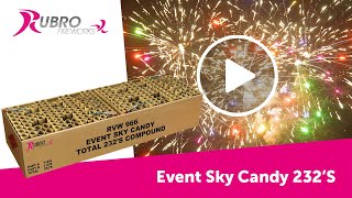 Lust voor het oog! 232 schoten verdeeld over 2 delen. 25 & 30 mm kaliber, extreem zwaar gevuld. Sky Candy = puur vuurwerkspektakel.