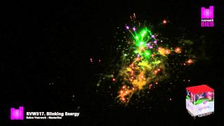 NIEUW! 26 shots cake met extra kruit inhoud. Deze exclusieve cake is voorzien van gouden blink boekketten, blauwe sterren en zilveren spinners. 316 Gram Kruitgewicht