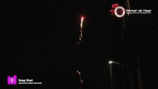 Mortier kogel met grote mijn en een gouden regen in de lucht.