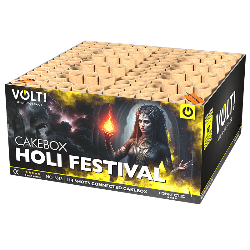 Holi Festival laat je onderdompelen in kleur! 114 schoten afgewisseld tussen I-shape en waaiers geven je het gevoel in India te staan. Met maar liefst 1,5 kg kruit is het Holi gevoel overdadig aanwezig!