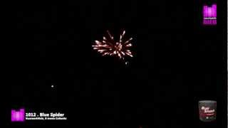 Harde burstknallen die ontpoppen in blauw magma, 121,5 gram kruit. Kleuren: blauw, goud Effecten:tail, peony, rain, willow