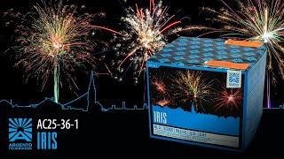 Iris van Argento Feuerwerk is een 36 shots 25 mm cake met het spider crackling effect!