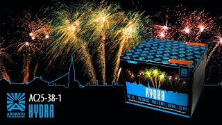 Hydro van Argento Feuerwerk is een 38 shots 25 mm cake met langdurige gouden effecten in meerdere schietrichtingen!
