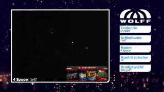 Deze 4 giga-cakes vormen samen een kwartet aan ruimte: luide knallen, heldere kleurenboeketten en een zee aan effecten! Totaal 1021 gram kruit. Bestelsite Wolff Vuurwerk: wolff-vuurwerk.nl