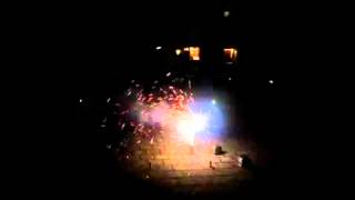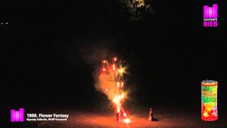 Een krachtige fontein met witte glittering, blauw-zilver crackling en een gouden palm met blauwe sterren, 75 gram kruit.