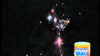 13 rode kometen monden uit in groene crackling sterren, 40 gram kruit.