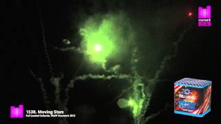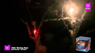 Verrassend vernieuwend vuurwerk: 30 schots cake met volle glitterboeketten afgewisseld door wegschietende kometen kris kras door de lucht, 489 gram kruit.