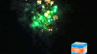 36 shots multi color cake met 290 gram kruit; red, green, blue, purple peony's and strong crackling
