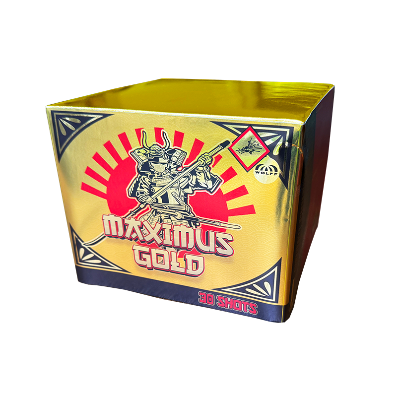De Maximus Gold presenteert een adembenemend schouwspel van gouden vuurwerkeffecten die de nachtelijke hemel verlichten met een reeks krachtige en schitterende explosies. Dit spectaculaire vuurwerk creëert een grandioze en gedenkwaardige ervaring.