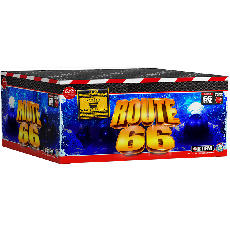 Volg de gouden route naar een onvergetelijke jaarwisseling. 66 schoten vol spektakel in waaiervorm. Een waardige afsluiter van een reis over Route 66!