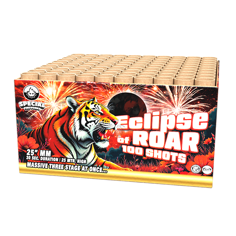 Angstaanjagend…. Deze compound vult de lucht met mooie blinker, maar dan ….. ROAR, ROAR, ROAR! 3x all at once doet de lucht beven!