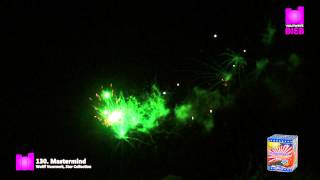 25 schots cake. Gekleurde kometen spatten uiteen in grote sterrenboeketten in verschillende kleuren en een finale van goud! 370 gram kruit.