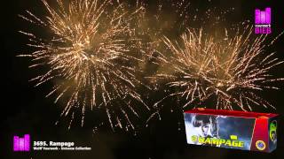 De grootste gouden waaiercake van het land: 45 gouden mijnen en gouden boeketten van links naar rechts. Vult de lucht helemaal met goud! 499.5 gram kruit.