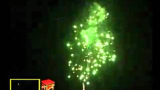 Boeketten van gouden staarten met aflsluitend flitsende zilveren sterren en een finale, 375 gram kruit.